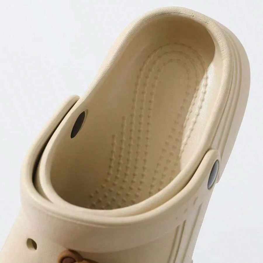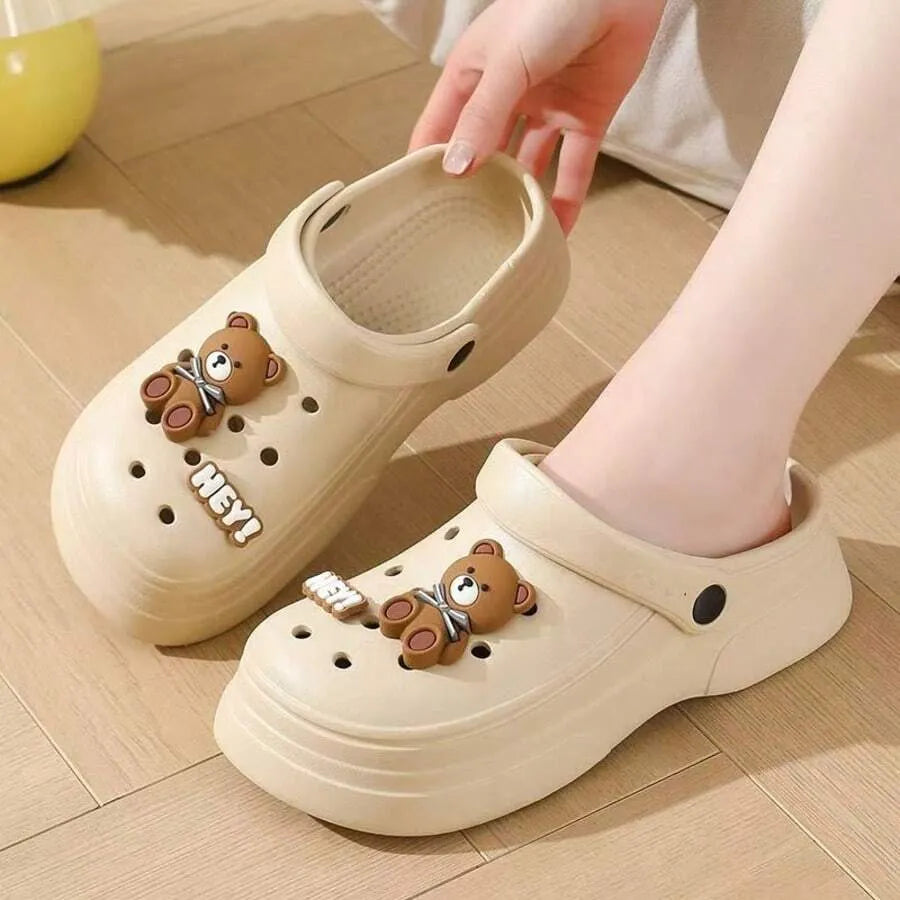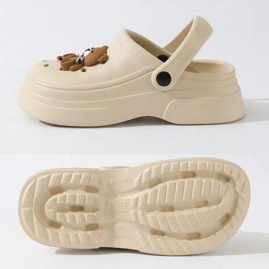 Cute Bear Clogs, Slip-On Garden Shoes, Platform Sandals, Beige